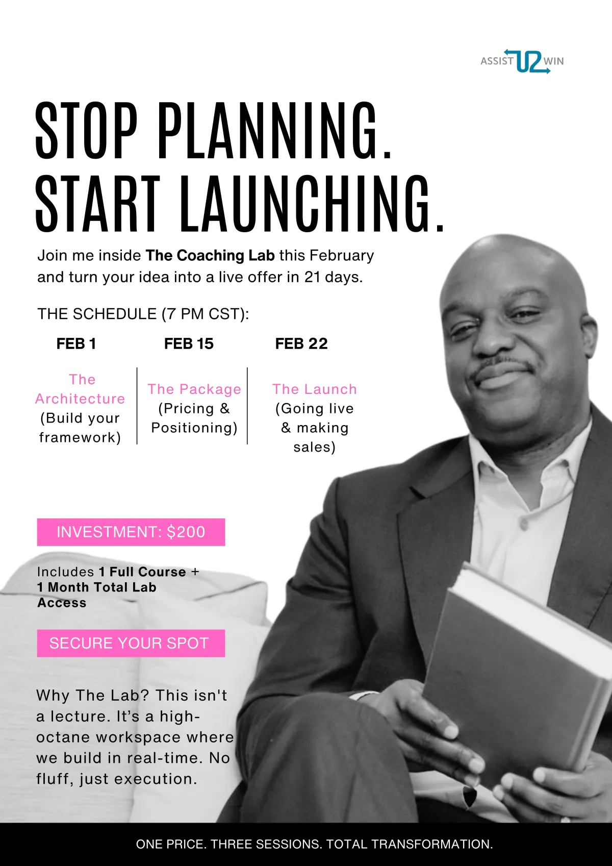 To find high performers who need Clarity, Strategy, and Accountability. Our February Focus inside The Coaching Lab is to assist you in getting your product launched.